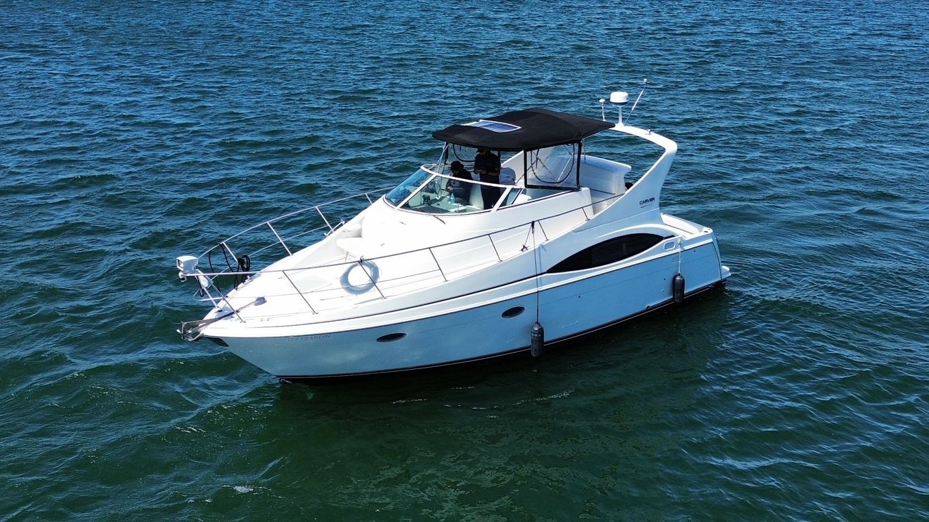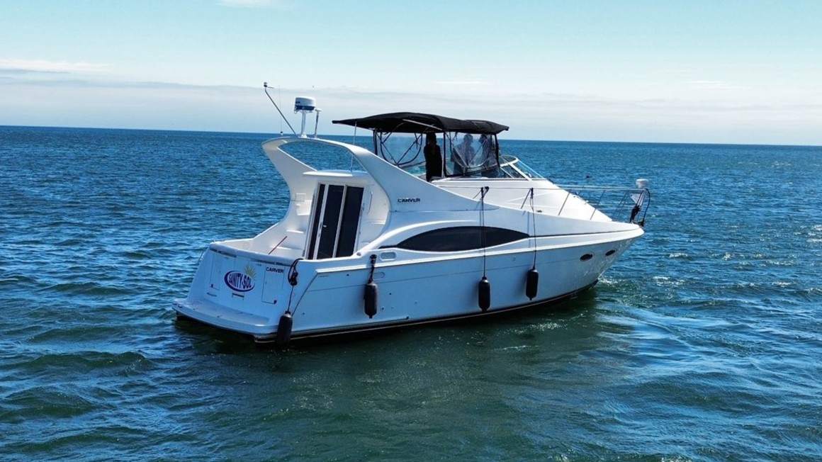 The Carver 350 Mariner is one of the most popular models in its class thanks to its huge interior volume using the full beam, incredible flybridge layout offering direct access to bow, and reliable Volvo power.