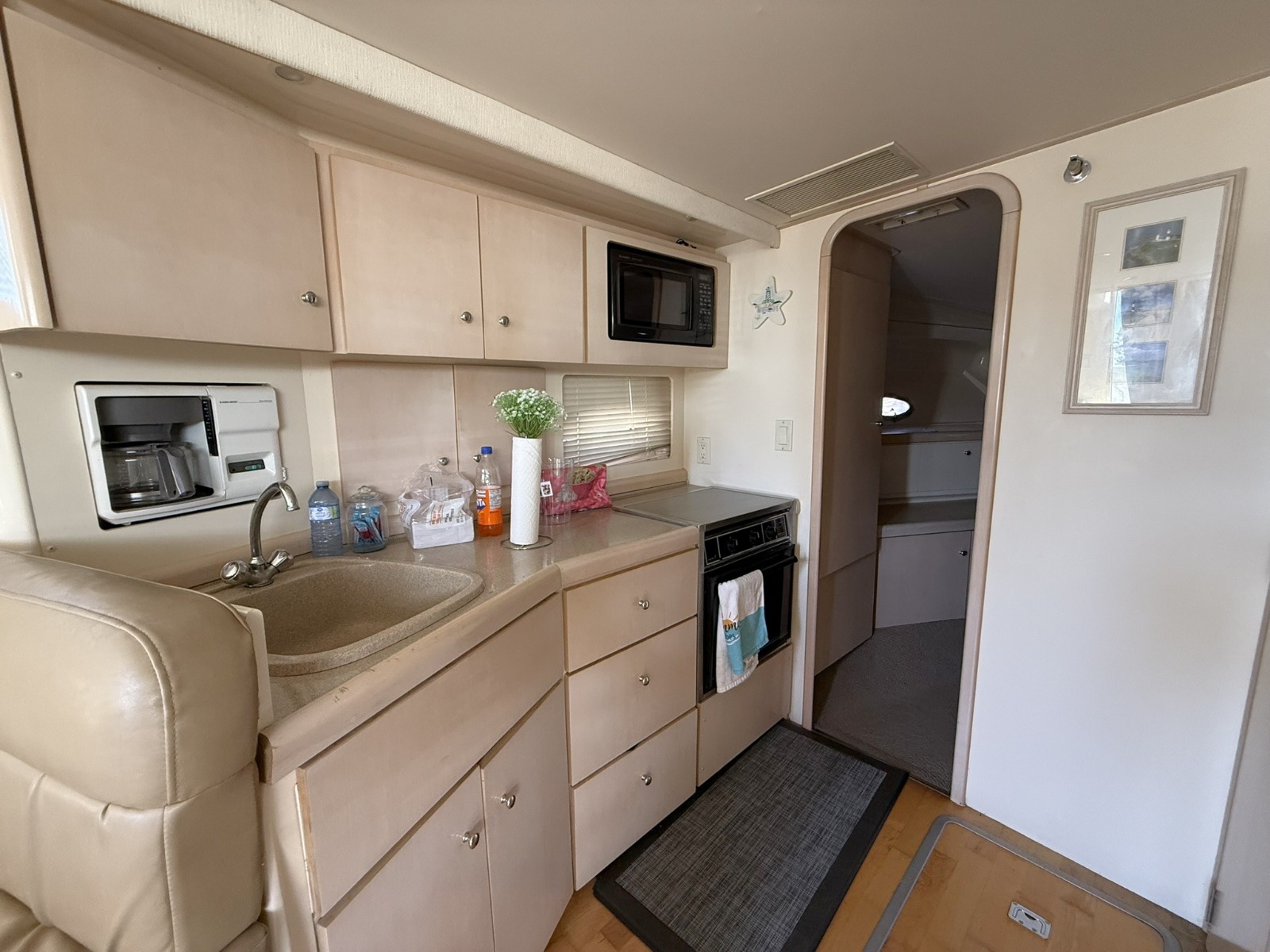 – Fully Equipped Galley – Refrigerator, stove, microwave, and sink