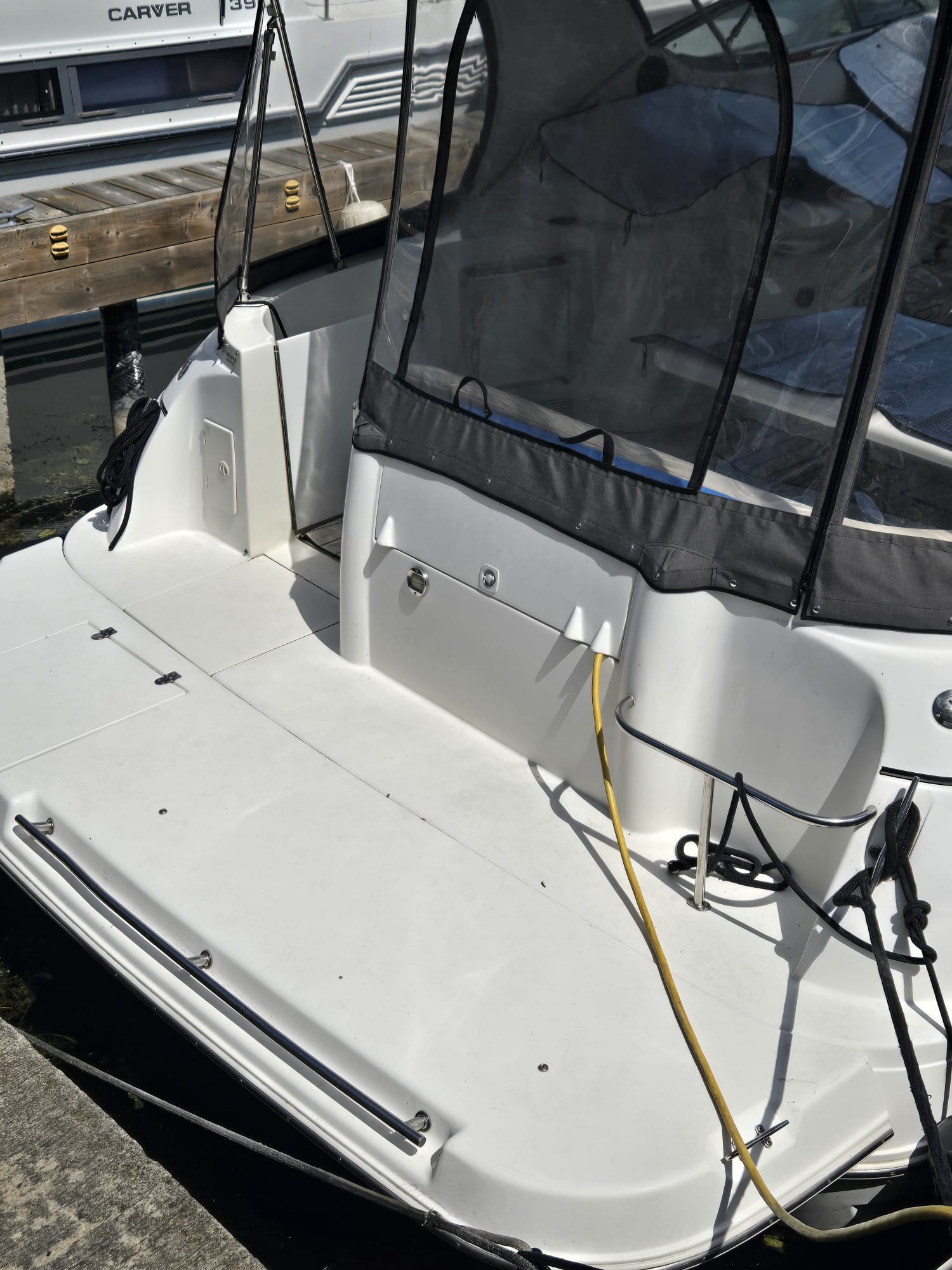 – Remote bow light; stainless steel boarding ladder; fiberglass swim deck