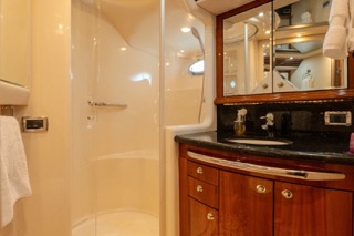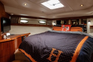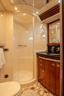 Powered by twin Caterpillar 3412E diesel engines, the yacht offers smooth, reliable performance with impressive speed and handling. A direct-drive inboard setup, 5-blade bronze propellers, and a 19° deadrise provide stability, efficiency, and a confident ride in a variety of conditions.