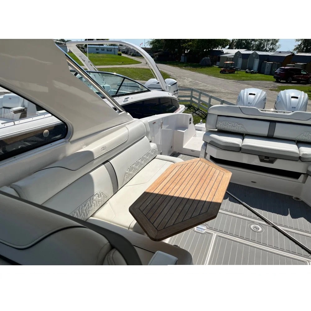 Spacious Layout & Comfort: Expansive bow seating for 5–6 adults, dual L‑shaped lounges in cockpit with tables, convertible sunpad at stern with adjustable bolsters.