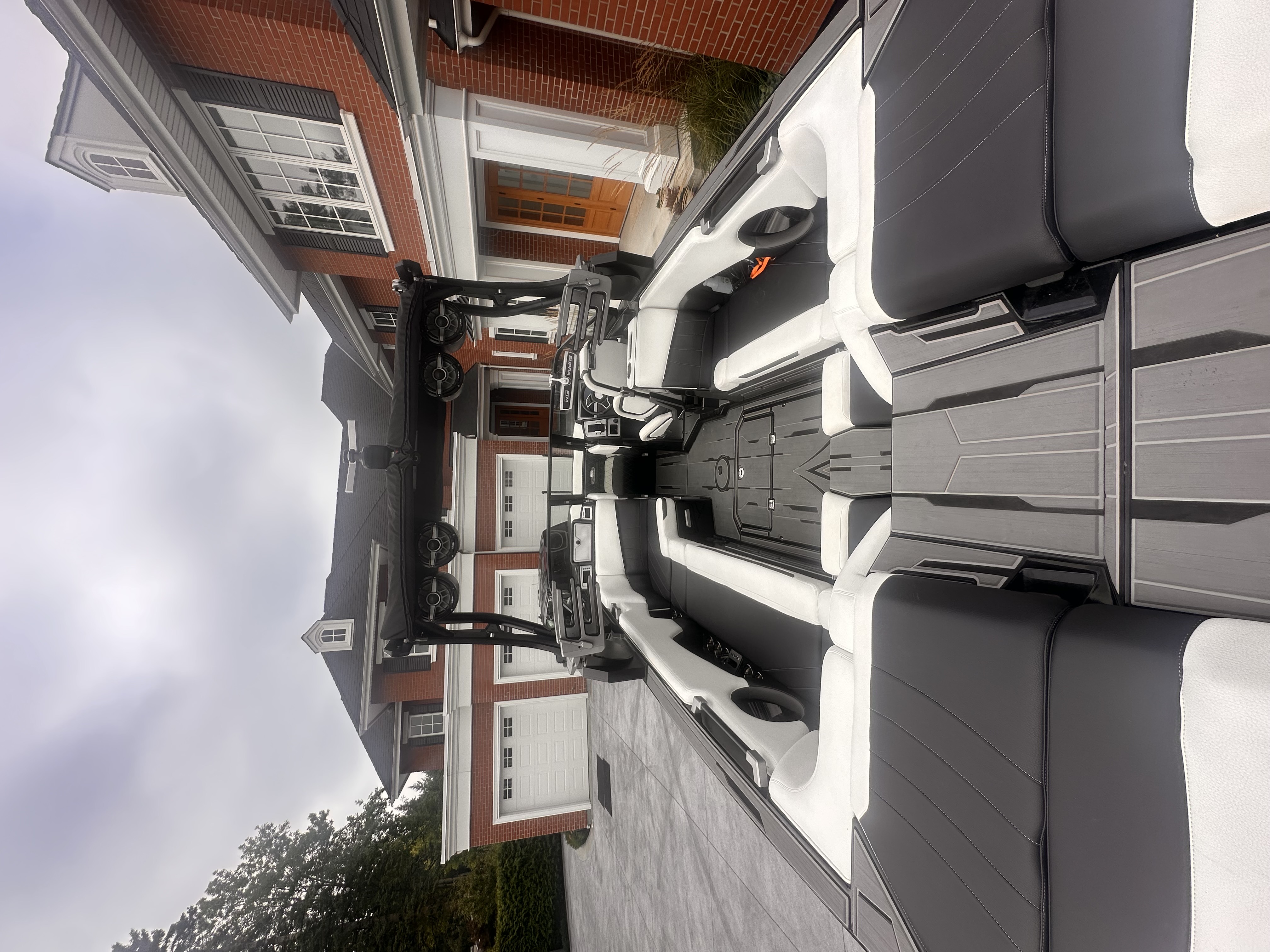Premium JL Audio sound with tower speakers, subwoofers, and amplifiers delivers crystal-clear audio across the boat, while underwater LEDs and full interior RGB lighting create the perfect evening atmosphere.