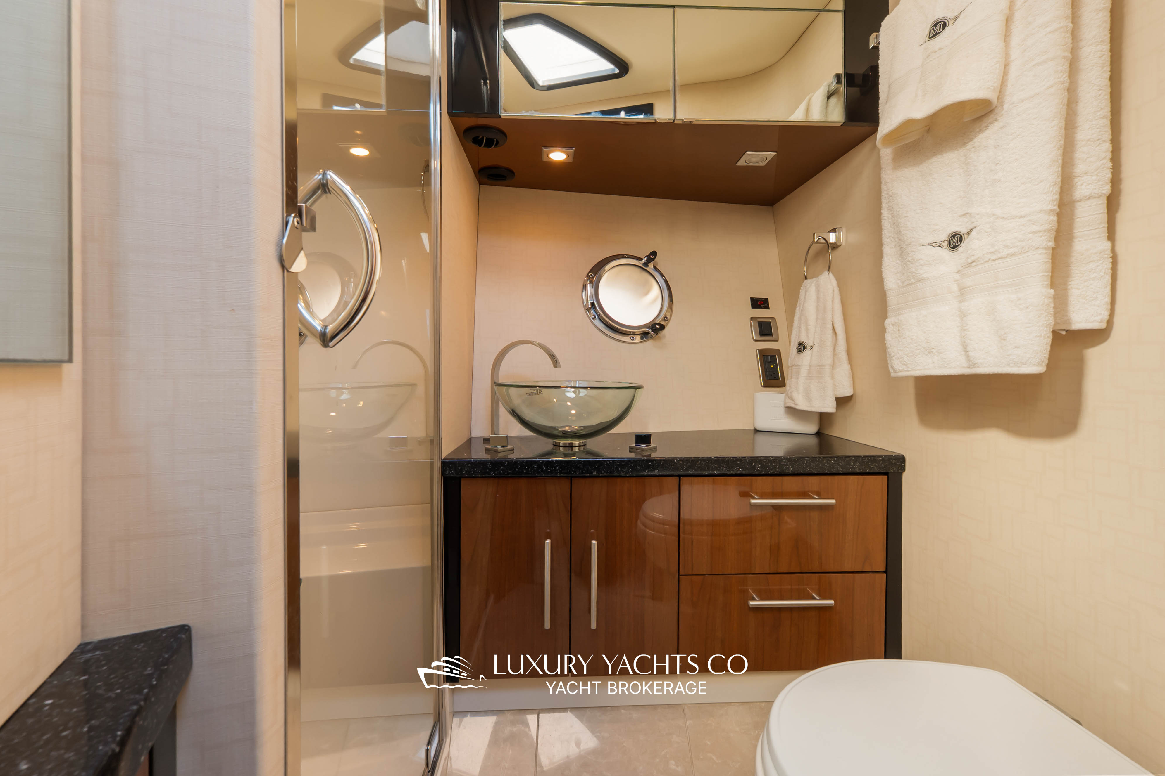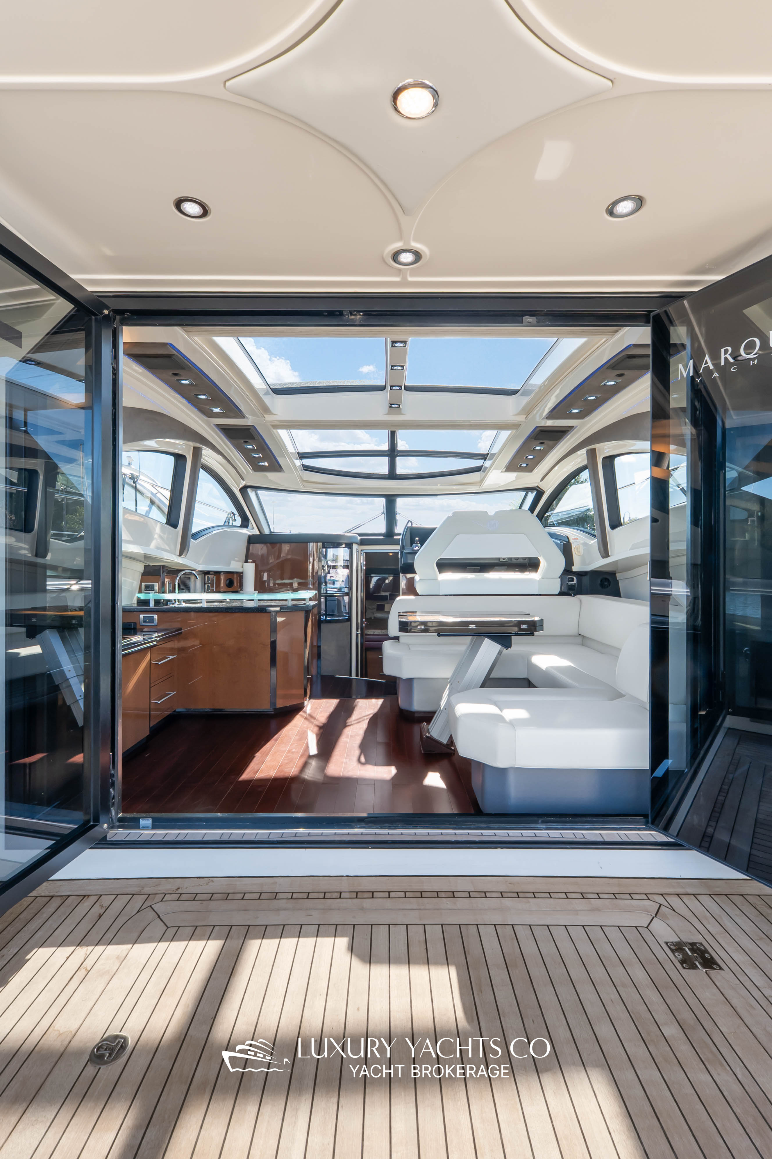 Docking is effortless with Volvo’s joystick control, and the experience at the helm is enhanced by newly updated electronics, including dual 22” Garmin chart plotters, Garmin autopilot, 3D HD radar, and 3D sonar. The engine bay is protected year-round with an engine bay heater, and every system has been professionally serviced — this vessel is 100% turn-key ready.