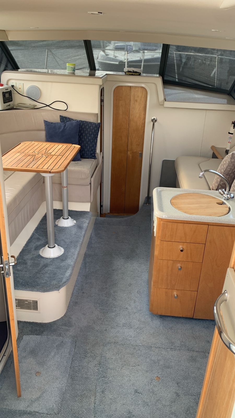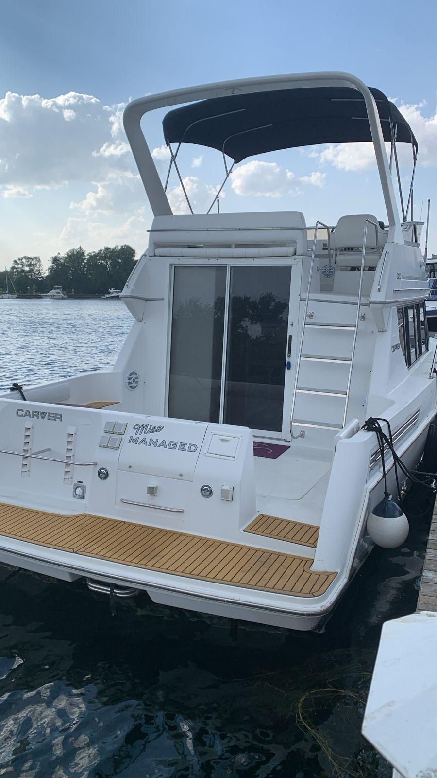 Well-maintained and clean 1996 Carver 320 Voyager – ideal for weekend cruising, entertaining, or relaxing on the water. Low engine hours and a recent survey make this boat a reliable, ready-to-go option.