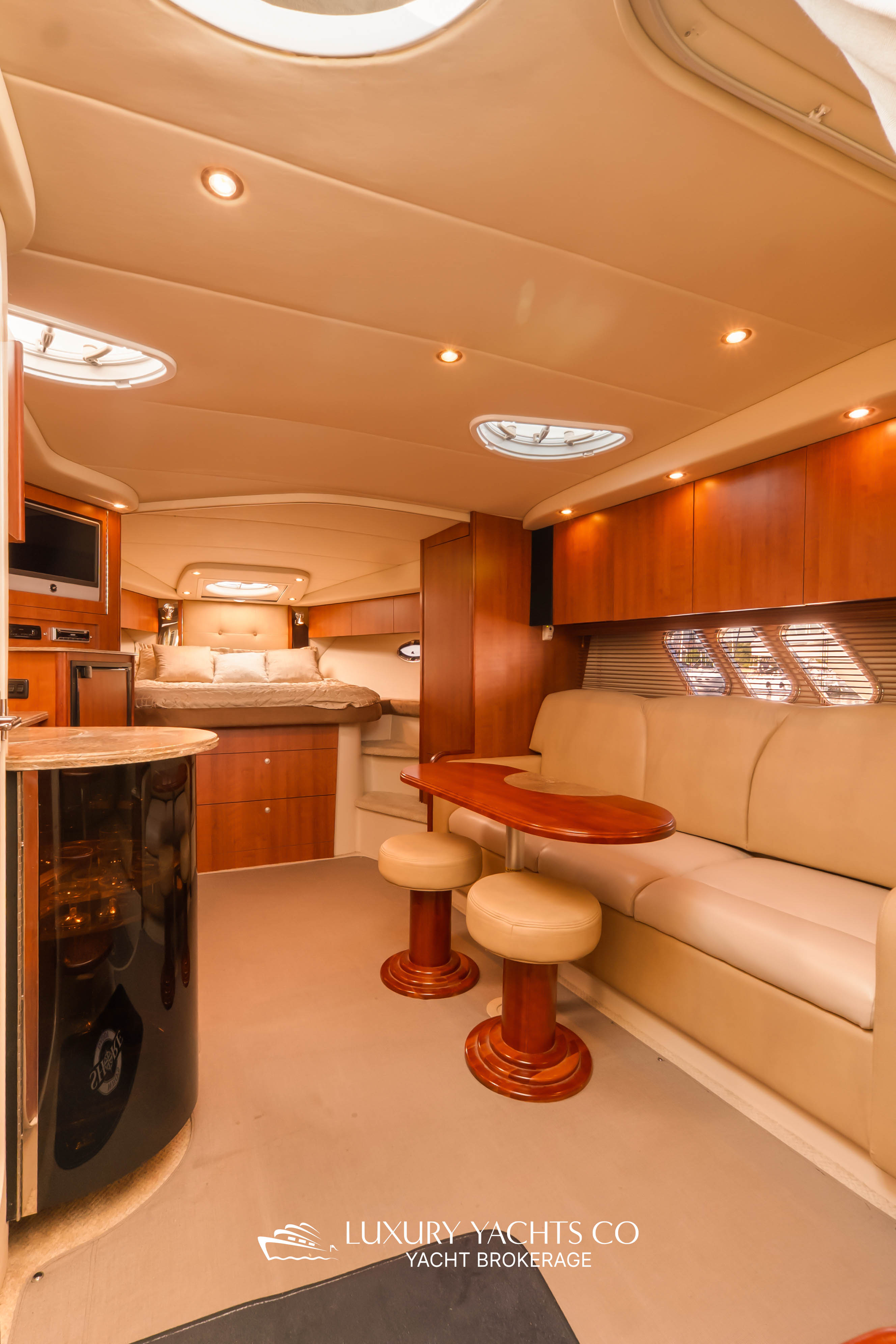 • Spacious Cockpit Layout – Wraparound seating, removable table, and wet bar